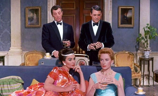 Alfred Hitchcock saura exploiter toute la palette de jeu de Cary Grant, au service de personnages complexes, ambigus et troublants. Leur collaboration, elle aussi exceptionnelle, aligne les chefs-d’œuvre : de Soupçons (Suspicion, 1941) à La Mort aux trousses (North by Northwest, 1959), en passant par Les Enchaînés (Notorious, 1946) et La Main au collet (To Catch a Thief, 1955). À la fin des années 1950, Grant devient également producteur, et permet à Blake Edwards de signer l’une de ses premières grandes comédies : Opération jupons (Operation Petticoat, 1959), où il partage l’affiche avec Tony Curtis dans un sous-marin rose, dont une soupape détruite lors d’une attaque est remplacée… par une gaine-culotte ! Cary Grant met un terme définitif à sa carrière en 1966, avec Rien ne sert de courir (Walk, Don’t Run), dernier film d’un autre vétéran d’Hollywood, Charles Walters. En 1970, il reçoit un Oscar d’honneur, amplement mérité, pour l’ensemble de son œuvre et l’empreinte indélébile qu’il laisse dans l’histoire du cinéma.