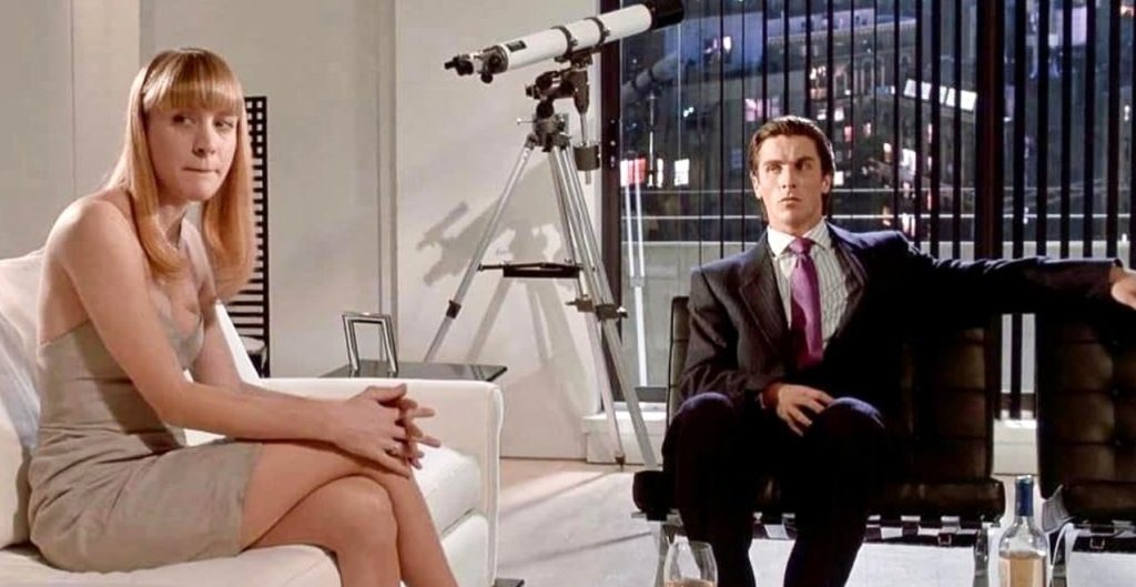 Patrick Bateman est la représentation incarnée d’un capitalisme sauvage, brutal, inarrêtable. Il est tout-puissant, le monde semble à ses pieds. Lui et ses confrères n’existent que dans et par le paraître. L’obsession des marques de luxe, de la haute couture, des parfums, des objets coûteux jusqu’aux cartes de visite, haut de gamme et prétendument uniques, et des lieux de restauration « d’exception » dictés par la mode, structure intégralement leur rapport au monde. Nous sommes en plein cœur des années 1980 : tout paraît possible, un nouveau monde s’invente, où l’argent coule à flots et renverse toutes les valeurs. Bateman, dans son appartement immaculé, aussi vide que son esprit, s’entoure de cassettes VHS, les années 80 sont l’âge d’or de la vidéo, mêlant films pornographiques et films d’horreur, qu’il consomme sans distinction morale ni affective. Il n’y perçoit rien d’autre qu’un simple prolongement de son comportement quotidien, symptôme d’un regard totalement désensibilisé sur la violence, le désir et l’humain.