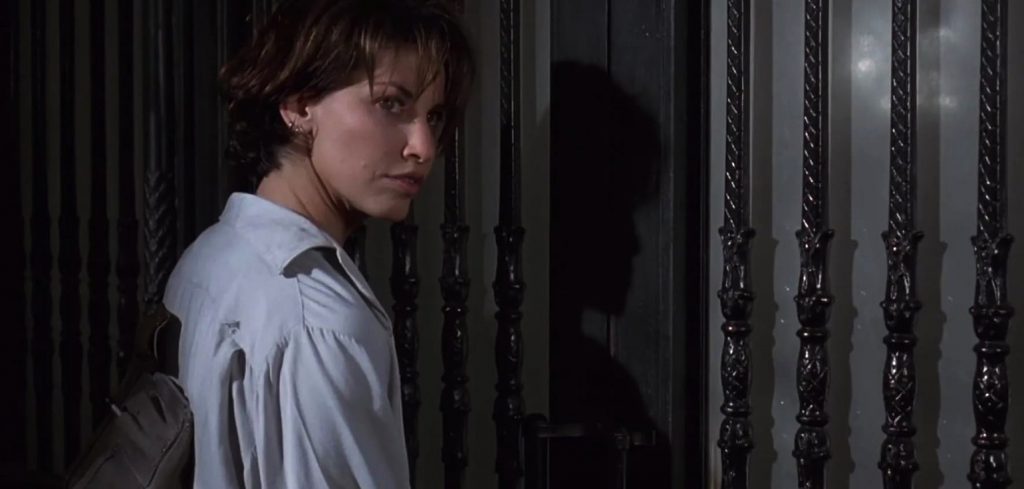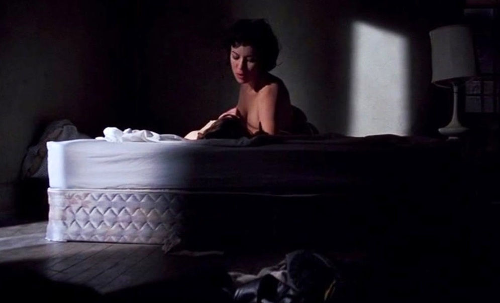 Pour composer Corky, Gina Gershon s’inspire du jeu de James Dean, du jeune Marlon Brando et de Clint Eastwood. Elle adopte une gestuelle et une allure volontairement masculines, aussi bien dans sa démarche que dans son costume : blouson, débardeur, pantalon. Elle se situe ainsi à l’exact opposé de Violet, figure assumée de la femme fatale, avec robe courte moulante, bas noirs et talons aiguilles. C’est d’ailleurs Violet qui prend l’initiative dans une scène de séduction lesbienne d’une grande délicatesse. Chaque geste, chaque mouvement des corps et des mains exprime une sensualité à fleur de peau, construite comme une véritable chorégraphie du désir. Lors de leur première scène d’intimité, la mise en scène insiste sur ce basculement du regard et du toucher, Violet guide la main de Corky afin qu’elle la pénètre, avant même que leurs lèvres ne se rapprochent. Dans ce ballet d’amour, les mains deviennent un organe sexuelle. C’est Violet qui prend Corky.