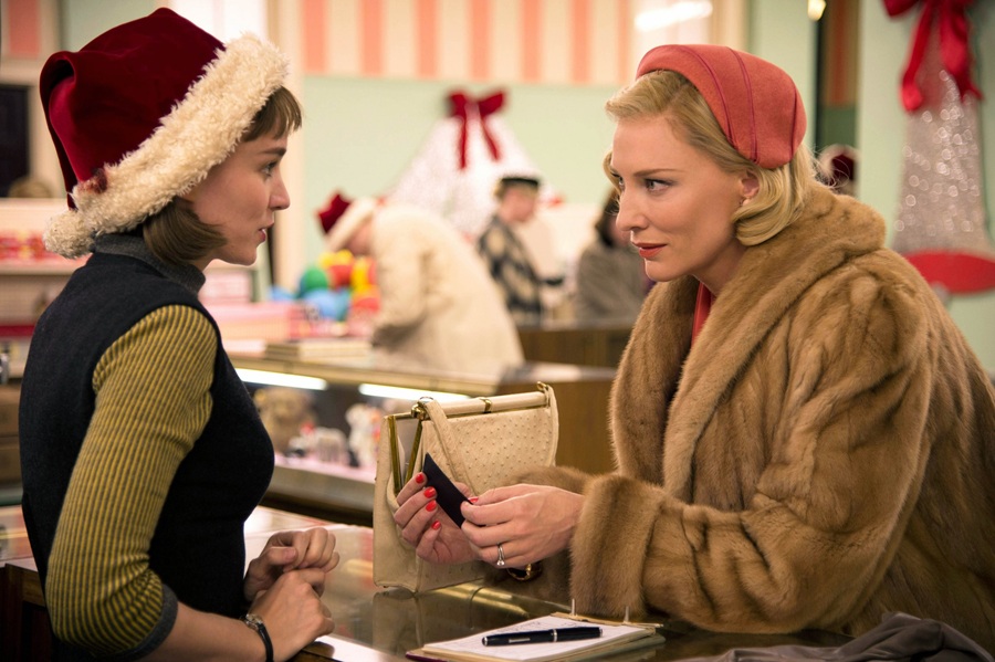 Thérèse Belivet (Rooney Mara), apprentie photographe, travaille au rayon jouets d’un grand magasin de Manhattan à l’approche de Noël. Elle y fait la rencontre de Carol Aird (Cate Blanchett), une cliente élégante venue chercher un cadeau pour sa fille. Sur les conseils de Thérèse, Carol délaisse une poupée, son premier choix, pour un train électrique. Au moment de partir, Carol oublie ses gants sur le comptoir.Thérèse les lui renvoie par la poste, en utilisant les coordonnées laissées sur la fiche de vente. Richard (Jake Lacy), le petit ami de Thérèse, lui propose un voyage en France, esquissant la perspective d’un mariage. Mais Thérèse troublée par sa rencontre avec Carol, n’a qu’un désir la revoir…