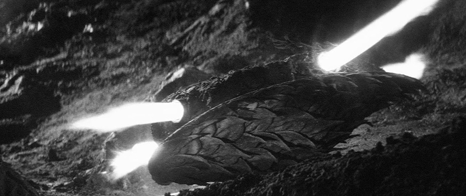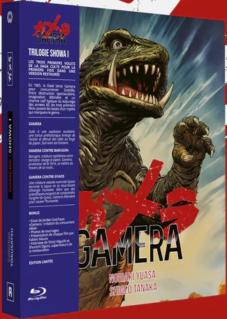 Gamera (Gamera – Daikaiju Gamera, 1965, 79 mn), en compléments : Le Monstre géant Gamera, présenté par Fabien Mauro, revient sur la genèse de ce premier film de monstres de la Daiei, en en éclairant les enjeux esthétiques et industriels (21 mn). Avec également une interview de Shinji Higuchi et Shunichi Ogura, qui détaillent le travail minutieux de restauration, réalisé à partir du négatif original (8 mn).