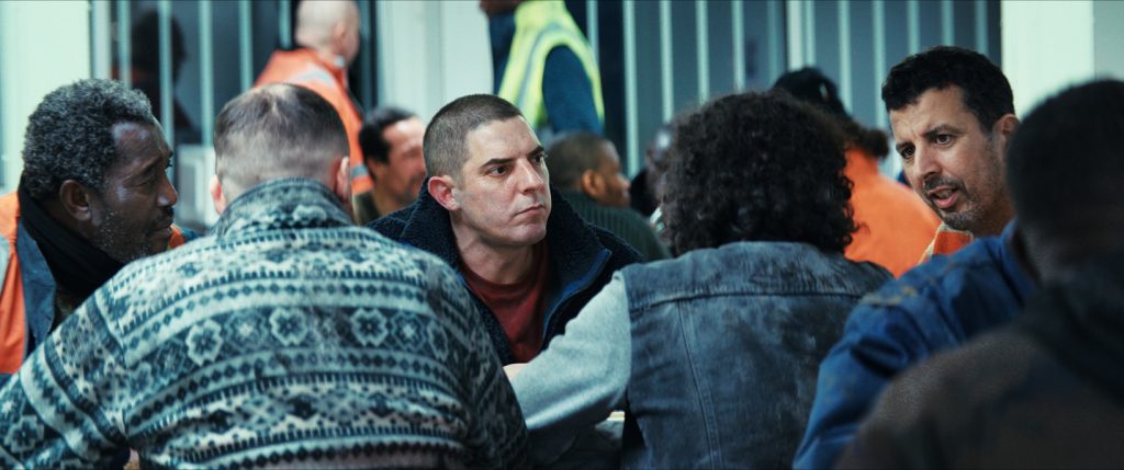 Dans le rôle de Vincent, le travailleur fragile face au système, on retrouve le comédien Damien Bonnard. A l’affiche entre autres de films comme Rester Vertical (2016) d’Alain Guiraudie, En Liberté ! (2018) de Pierre Salvadori, Les Misérables (2019) de Ladj Ly, Seules Les Bêtes (2019) de Dominik Moll, Les Intranquilles (2021) de Joachim Lafosse, Pauvres Créatures (Poor Things, 2023) de Yòrgos Lànthimos, Niki (2024) de Céline Sallette, ou encore La Voie du Serpent (2025) de Kiyoshi Kurosawa, le toujours excellent Damien Bonnard porte l’histoire du film avec une intensité retenue remarquable et compose un Vincent d’une rare complexité. Au cœur de Grand Ciel, Vincent est un personnage marqué par la fatigue et façonné par la frustration et la solidarité fragile de ses collègues. Vincent n’est pas un héros mais un point de résistance fragile. Immédiatement crédible, Bonnard interprète son rôle en privilégiant d’infimes expressions, des silences pesants ou des regards fuyants qui en disent plus long que les dialogues eux-mêmes. Dans les scènes de groupe sur le chantier, ses interactions avec Saïd et Nour révèlent des fractures invisibles entre la camaraderie et la survie individuelle. Lorsqu’un collègue disparaît, la transformation intérieure de Vincent se traduit par des détails corporels, un sursaut, un silence prolongé ou une hésitation. Ces choix amplifient le climat d’incertitude qui traverse le film et font du corps de l’acteur un lieu de projection du malaise social.