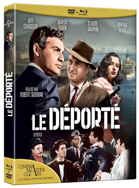 Le Déporté (Deported), un film de Robert Siodmak avec Märta Torén, Jeff Chandler, Claude Dauphin, Marina Berti, Richard Rober, Silvio Minciotti, Carlo Rizzo, Mimi Aguglia… Scénario : Robert Buckner d’après une histoire de Lionel Shapiro. Directeur de la photographie : William Daniels. Décors : Bernard Herzbrun et Nathan Juran. Montage : Ralph Dawson. Musique : Walter Scharf. Producteur : Robert Buckner. Production : Universal International. États-Unis. 1950. 88 minutes. Noir et blanc. Format image : 1,37:1. Audio : Version originale avec sous-titres français (blancs ou jaune) DTS-HD Dual Mono 2.0 (BR) et Dolby Audio Dual Mono 2.0 (DVD). Tous Publics.