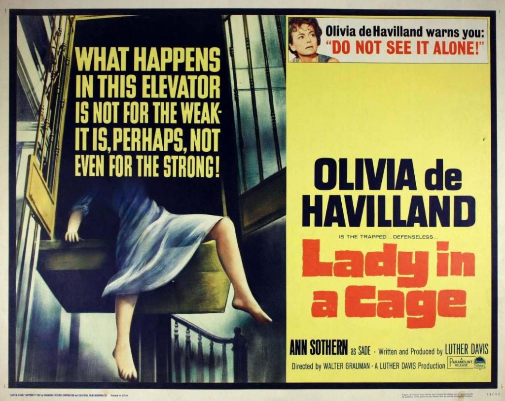 14h30 UNE FEMME DANS UNE CAGE, Thriller de Walter Grauman. Une femme blessée, coincée dans son ascenseur et terrorisée par des intrus… avec Olivia de Havilland, James Caan, Ann Sothern… la photo est du grand Lee Garmes (Shanghaï Express, Scarface)… (États-Unis, 1964, 94 minutes) Carte blanche Stephen Sayadian qui présente la séance. Vostf S. 100