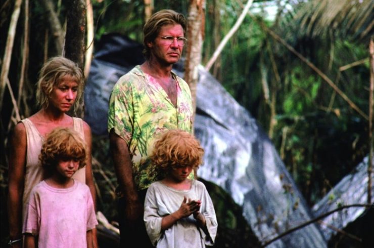 Le cœur du film est l’utopie d’Allie Fox. Dès la première scène, Allie Fox se présente comme un homme visionnaire, un idéaliste refusant la décadence américaine. Allie veut créer une nouvelle société. Une société « pure », en rupture avec le déclin de l’occident. Son invention d’un réfrigérateur fonctionnant sans électricité est le symbole de sa volonté d’innovation radicale et d’autonomie. Son invention symbolise son aspiration radicale à bâtir un monde nouveau, hors du capitalisme et de la société de consommation. Très vite, sa quête se transforme en une spirale obsessionnelle, où la rupture totale avec la réalité sociale et familiale devient inévitable. Son projet devient une telle obsession qu’Allie fera fi des dangers comme des besoins de sa famille pour finir par basculer dans la folie. La jungle, d’abord perçue comme espace de liberté et d’espoir, devient alors un piège, un labyrinthe où se perdent les idéaux. Dans la jungle, l’utopie s’effrite. L’isolement, la difficulté de survie, les conflits avec les populations locales et la tension croissante au sein de la famille détruisent progressivement le rêve. La dégradation progressive du rêve utopique en cauchemar illustre la limite de l’idéal quand celui-ci est imposé sans compromis. L’utopie devient dystopie.
