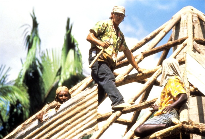 La séquence de la construction de la maison utopique dans la jungle nous montre l’ingéniosité d’Allie, ses inventions, et la participation de sa famille. On voit des moments d’espoir mais aussi des tensions apparaître. Cette séquence incarne le cœur du projet d’Allie, sa volonté de créer un monde nouveau. La maison est présentée comme un symbole, fragile et précaire, mais aussi novateur. La maison est l’incarnation physique de l’utopie, mais aussi le lieu où se cristallisent les conflits. Peter Weir ralentit le rythme pour accentuer la dimension artisanale, presque rituelle, de la construction. Harrison Ford mêle exaltation et autoritarisme, tandis qu’Helen Mirren exprime ses doutes et ses peurs à travers ses regards et ses silences.